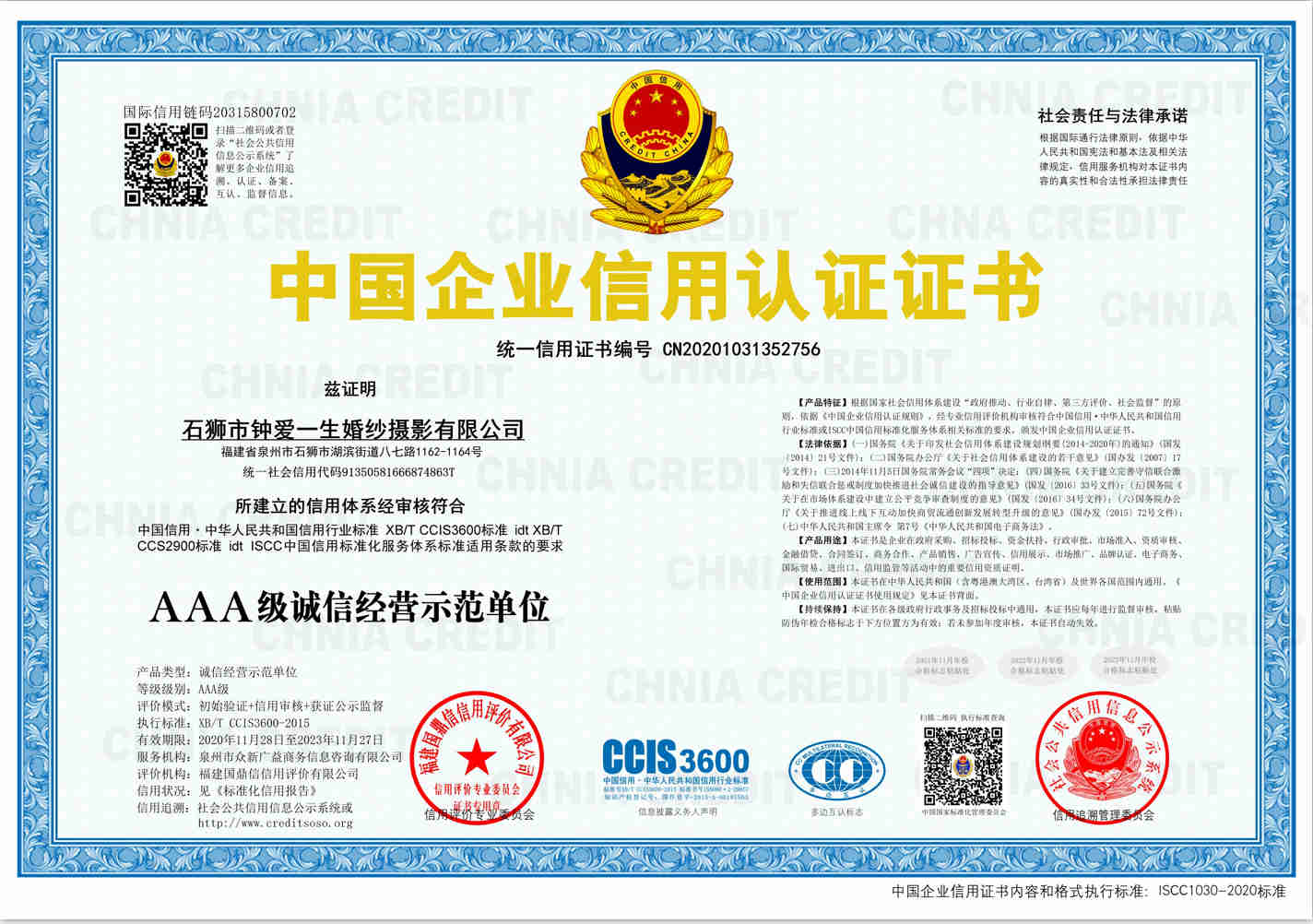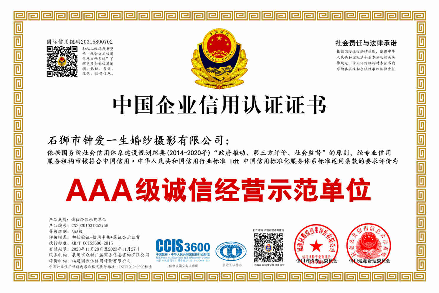 • 承诺单位:石狮市钟爱一生婚纱摄影有限公司