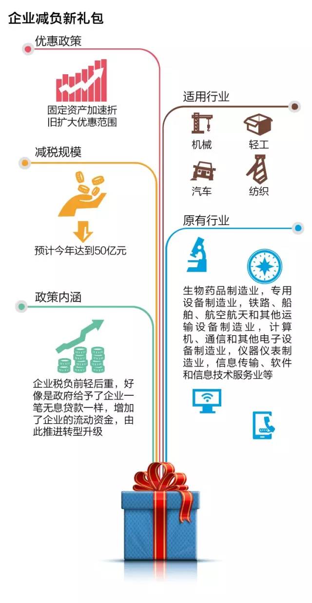 扩大固定资产加速折旧优惠范围后,预计今年将减税50亿元。这不仅有利于鼓励企业扩大投资,还将促进产业改造升级、增强经济发展后劲。(陈翰咏)