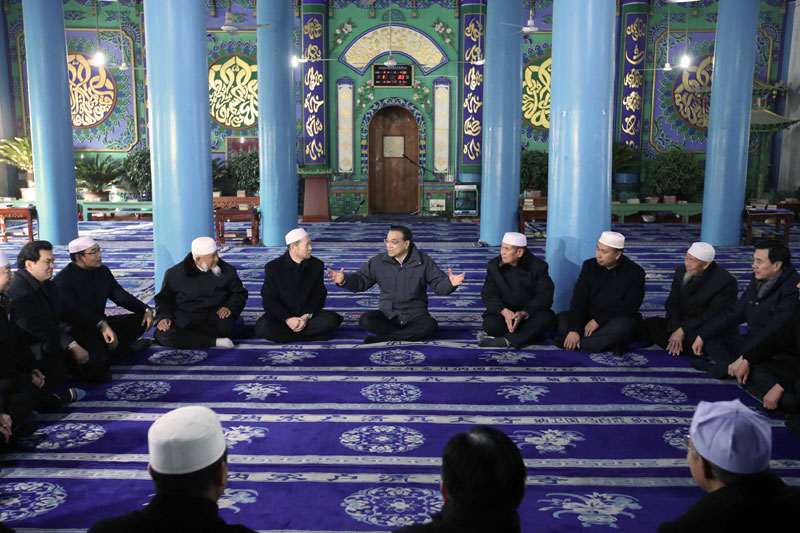 在银川纳家户清真大寺,李克强与宁夏民族宗教界上层人士围坐恳谈。他说,这座清真寺建筑体现了中华民族、中华文化多元一体特征。家和万事兴,希望继续发扬爱国爱教传统,促进民族团结、宗教和顺,实现各民族群众和谐相处、共同发展。随后,李克强来到当地集贸市场,与购买年货的群众交谈,并走到一个个摊位和街边小店,了解节日市场行情等情况,祝他们生意更加红火。