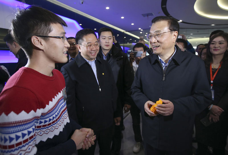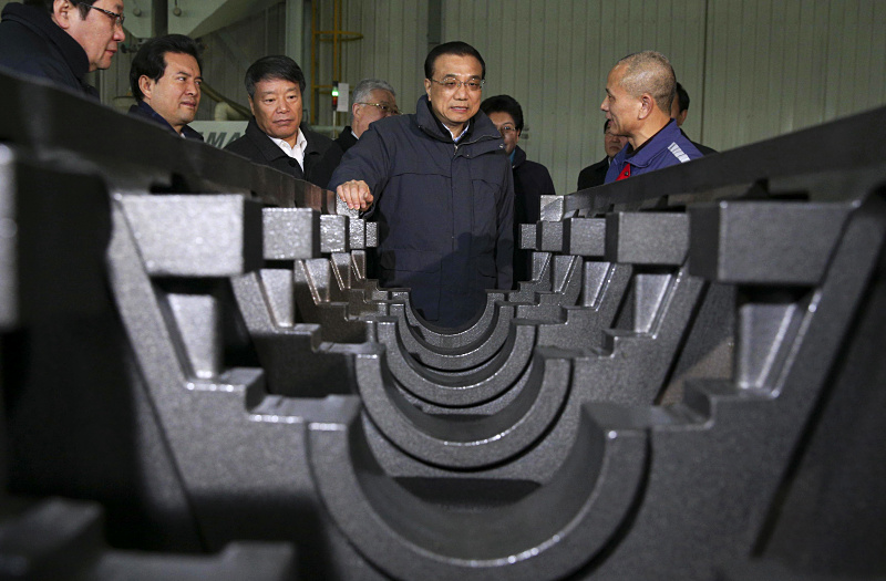 在共享装备公司,李克强先后走进传统铸造车间和3D打印车间,看到企业通过创新,将过去傻大黑粗的铸件产品逐步变成更加适应市场的精细灵巧新产品,今年利润将实现翻番,李克强赞许地说,用颠覆性新技术改造传统产业大有空间。“中国制造2025”的前途就在于“+互联网”,广泛集众智、借外脑,不仅可以在全球找到传统产业升级的最好技术方案,实现材料、工艺、模式、人才最佳组合,而且会大大提升效率和效益。要进一步打造更开放的平台,让大中小企业、科研院所都进来,形成聚集效应和创新工场,推动传统制造浴火重生。