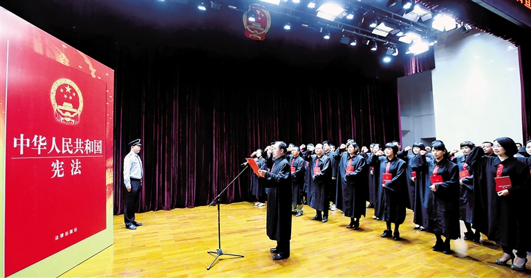2014年12月4日,为迎接首个国家宪法日,海南省高院新任法官向宪法庄严宣誓。