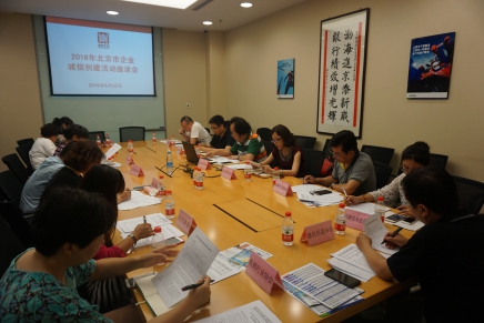6月22日,北京市企业诚信创建活动秘书处组织召开2016年各参与创建行业协会商会工作座谈会。