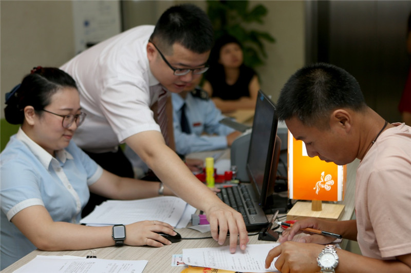 7月19日,工作人员在协助申请者办理业务。