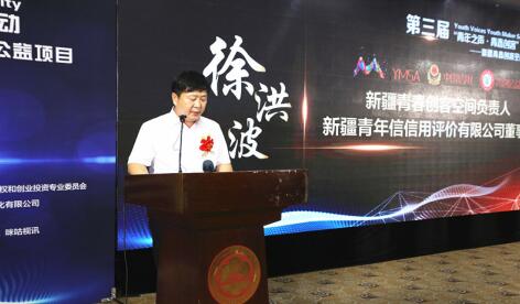 新疆青春创客空间负责人、新疆青年信信用评价有限公司董事长徐洪波致辞。