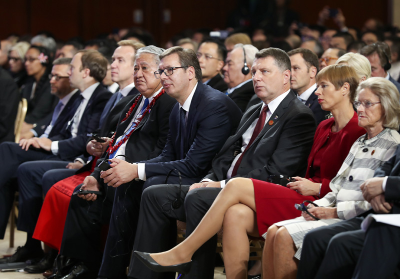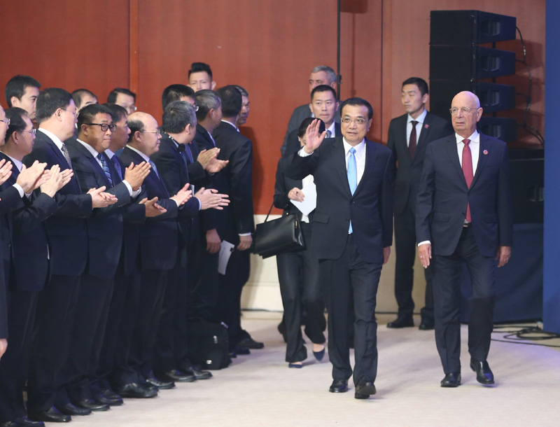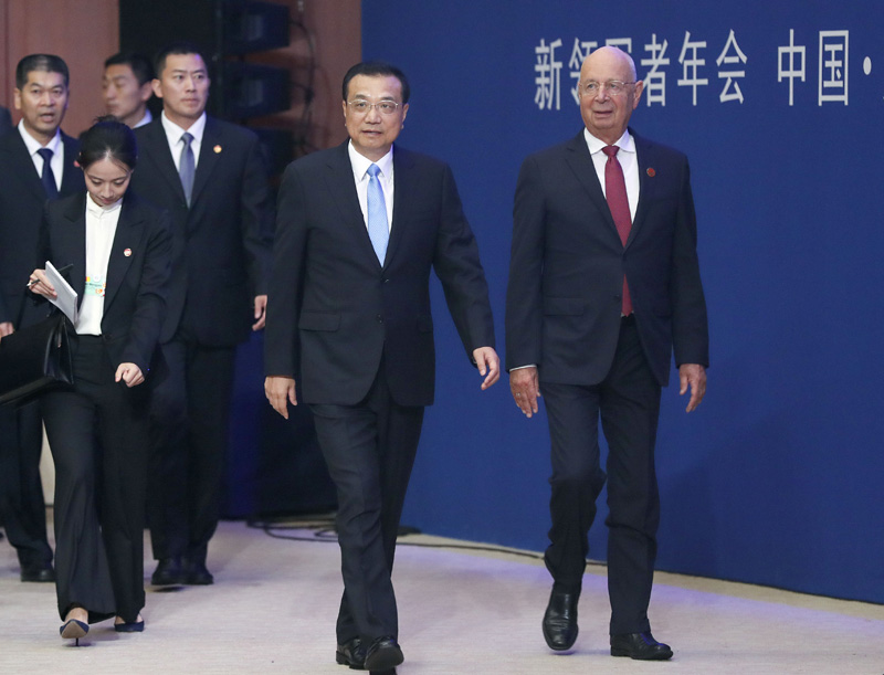 9月19日上午,国务院总理李克强在天津梅江会展中心出席2018年夏季达沃斯论坛开幕式并发表特别致辞。世界经济论坛主席施瓦布和塞尔维亚总统武契奇、拉脱维亚总统韦约尼斯、爱沙尼亚总统卡柳莱德、萨摩亚总理图伊拉埃帕等政要,以及来自100多个国家和地区的各界代表2500余人与会。