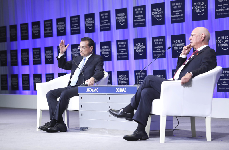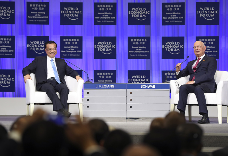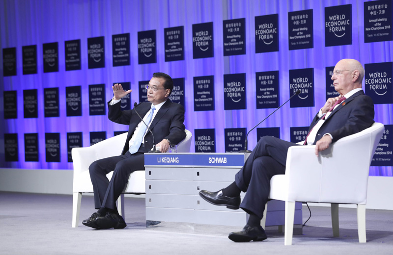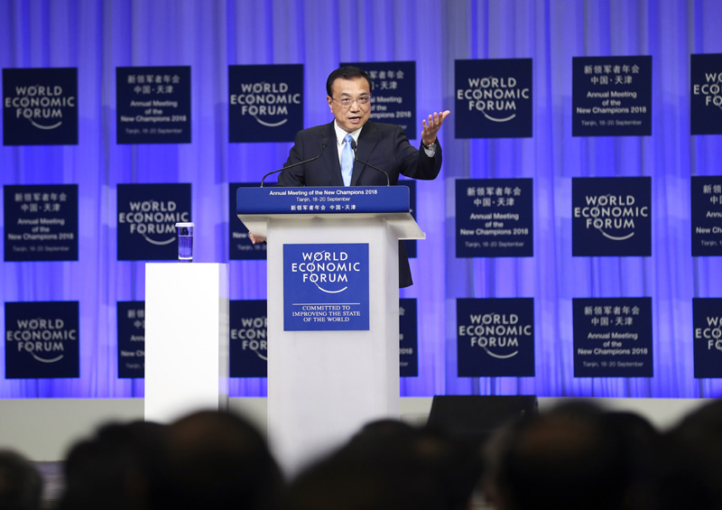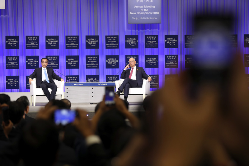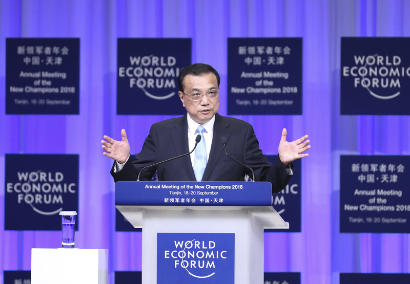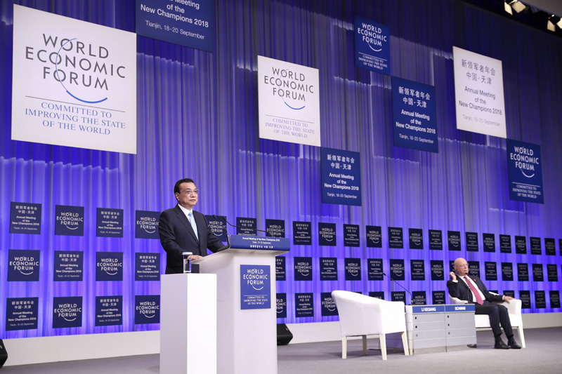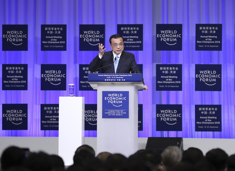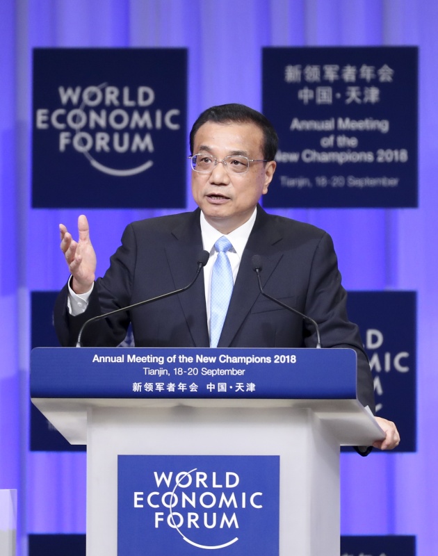 9月19日上午,国务院总理李克强在天津梅江会展中心出席2018年夏季达沃斯论坛开幕式并发表特别致辞。致辞后,李克强就宏观经济形势等回答提问。