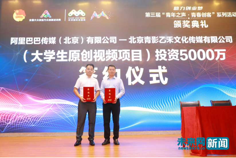 活动现场,大学生原创视频项目进行签约,融资金额达5000万元。主办方供图