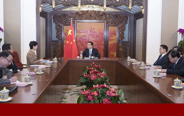 国务院总理李克强12月17日上午在中南海紫光阁会见来京述职的香港特别行政区行政长官林郑月娥,听取香港当前形势和特别行政区政府工作情况的汇报。