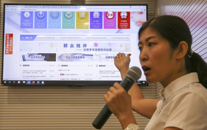 2018年9月5日,工作人员在司法部召开的新闻发布会现场介绍监督平台的使用。当日,司法部在中国法律服务网上正式开通“群众批评——证明事项清理投诉监督平台”,采用姓名加手机号实名注册制,群众有意见建议,即可点击“我要批评”提出,工作人员会及时在线转送相关地方和单位处理。