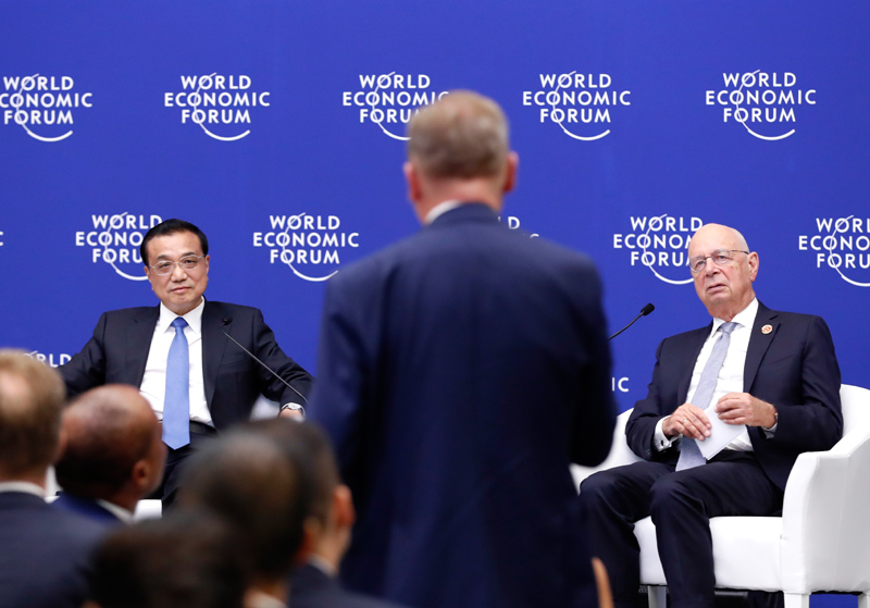 李克强就与会代表提出的关于中国营商环境、产业链调整、企业创新、金融业开放以及民营企业发展等问题回答了提问。世界经济论坛主席施瓦布主持对话会。来自世界各国的200余名各界代表出席。