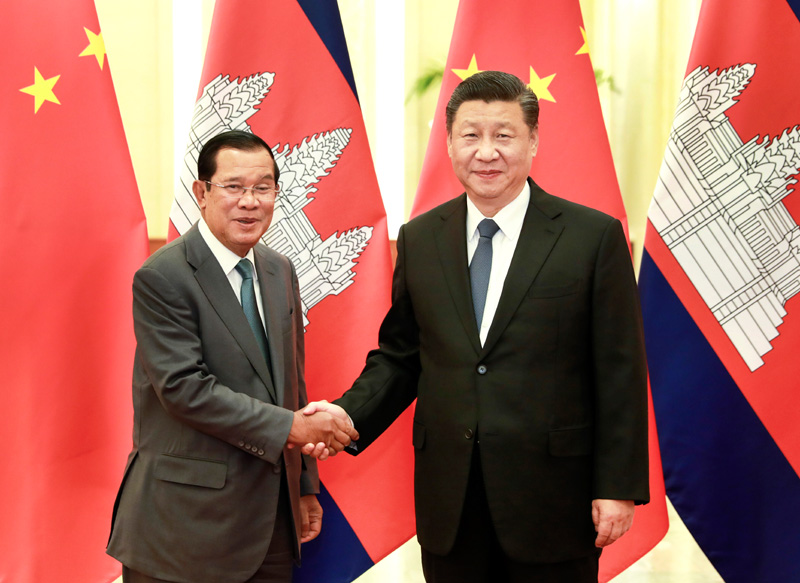 习近平指出,当前,中国政府和人民正在全力抗击新型冠状病毒感染肺炎疫情。患难见真情。在这个特殊时刻,柬埔寨人民同我们站在一起。西哈莫尼国王和莫尼列太后专门向我们表达慰问和支持,首相先生更是多次力挺中方,今天又特意来华访问,体现了牢不可破的中柬友谊和互信,诠释了患难与共这一中柬命运共同体的核心要义。中方对此深表赞赏。