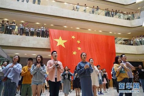 10月1日,一群年轻人在江苏南京新街口德基广场以“快闪”形式欢度国庆。 新华社记者 季春鹏 摄