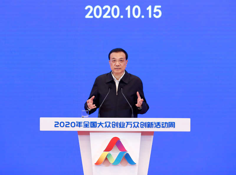 10月15日,中共中央政治局常委、国务院总理李克强在北京人民大会堂出席2020年全国大众创业万众创新活动周,发表重要讲话,并宣布活动周正式启动。