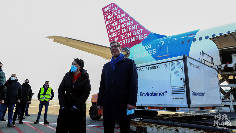 △2021年1月16日,塞尔维亚总统武契奇在机场迎接中国疫苗抵达。