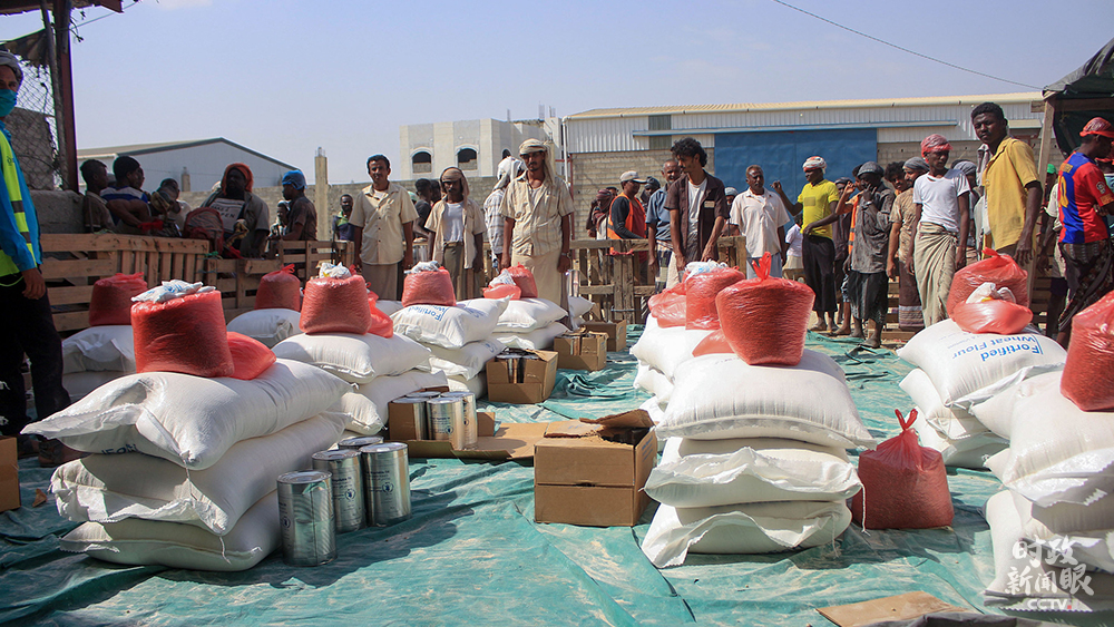 △2021年1月12日,也门哈杰,联合国世界粮食计划署为流离失所的难民们提供援助。